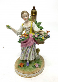 Lot Description:A Dresden Porcelain Table Lamp, Figure of a Flower Seller