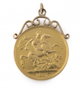 Lot Description:A gold double sovereign coin pendant
