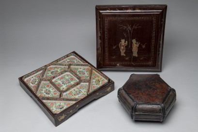 Lot #299 - A boxed Canton famille rose supper set and a lacquer covered box