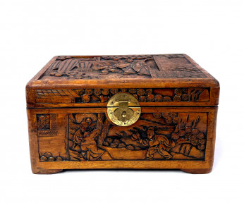 Lot Description:A Vintage Chinese Carved Timber Chest Depicting Figural Motifs, 20th Century