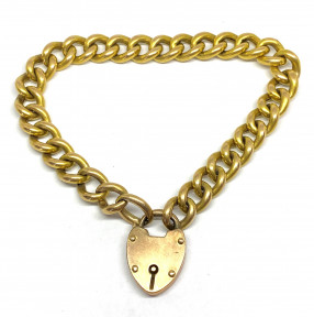Lot Description:A 15ct Yellow Gold Curb Link Bracelet with 9ct Rose Gold Heart Padlock