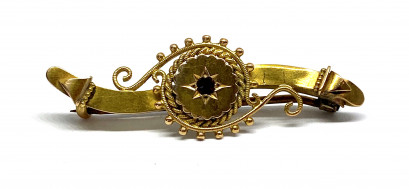 Lot Description:A Victorian 15ct Yellow Gold Garnet Circular Bar Brooch