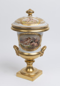 Notes:Condition: handle of central garniture vase has been repaired, Garniture has wear to the gilding..