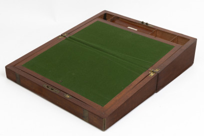 Notes:Condition: Some small losses to the veneer, interior with wear and losses to the trays, the interior of the lid with proscenium arch feature in velvet, and gold thread and embellishments in good condition.