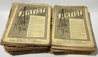 a monthly art and design journal published in London, approximately 80 issues from 1887-1893, original wrappers, browned, chipped and spine often split, Under the editorship of Charles Kains Jackson (1888ñ94), the journal contained a notable undercurrent of homoeroticism and had some importance in the homosexual subculture without being so overt as to alienate its mainstream readership [qty]