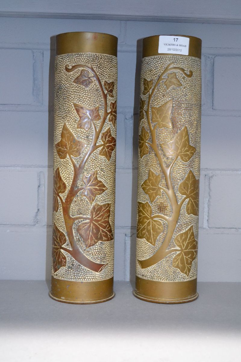 Lot #17 - Fine pair of WW I trench art vases