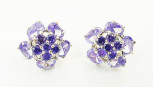 Lot #404 - A Pair of Sterling Silver and Amethyst Cluster Earrings