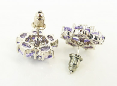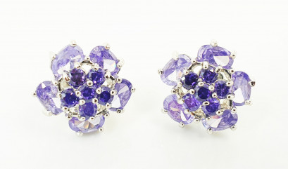 Lot Description:A Pair of Sterling Silver and Amethyst Cluster Earrings