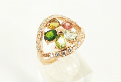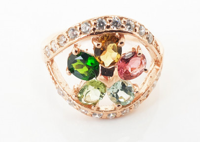 Lot Description:A Tourmaline and Gilt Sterling Silver 'Floral' Ring