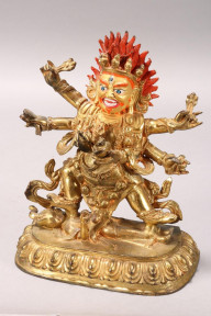 Lot #724 - Sino-Tibetan Gilt Bronze Mahakala