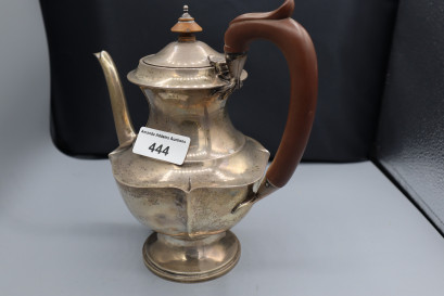 Lot #444 - Sterling silver coffee pot Birmingham 1889-1900 with unusual fishtail handle