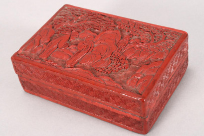 Lot Description:Chinese Late Qing Dynasty Carved Red Lacquer Box