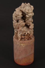 carved with dog of fo and young, above a cylindrical seal, height 12cm -