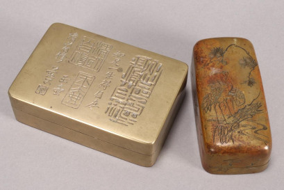 Lot #2420 - Chinese Brass Ink Box and Cover