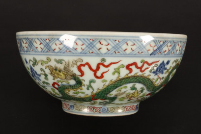 Lot Description:Chinese Porcelain Wucai Glaze "Dragon" Bowl