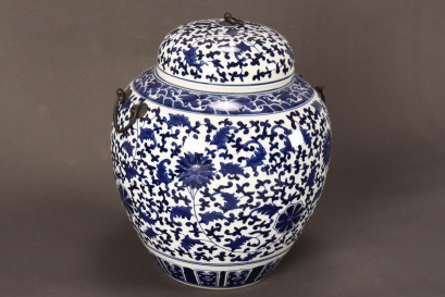 Lot Description:Large Chinese Blue and White Jar and Cover