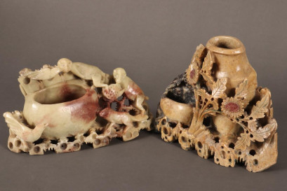 Lot Description:Two Chinese Carved Stone Figure Groups