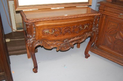 Lot Description:Antique walnut Louis XV style carved walnut single drawer console table