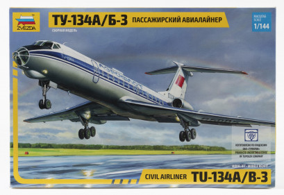 Lot Description:ZVEZDA: A NOS 1:144 scale Zvezda Tupolev TU-134A Civil Airliner Sealed Model Kit