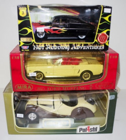 Polistil BMW 328, Model TG6, Mira Ford Mustang (1964 1/2), Motor Max, number 76600, Hot rodding adventures - 1949 Mercury, Scale: various, in original boxes -