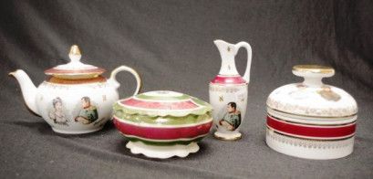 comprising a French lidded trinket box, teapot and a vase, and a Continental lidded trinket box -