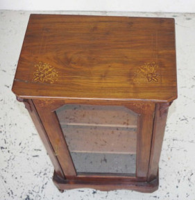 Lot Description:Antique inlaid walnut music cabinet