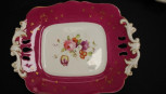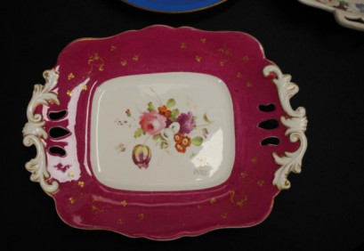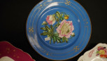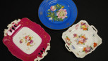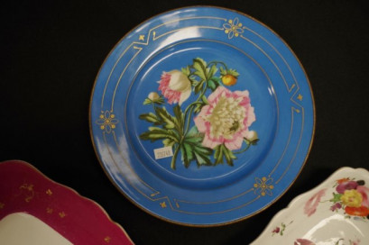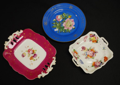 including: blossom decorated dual handled serving bowl; a painted blossom decorated dual handled footed serving dish; and a blossom decorated display plate; (diameter 24cm approx). -