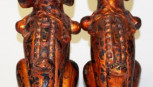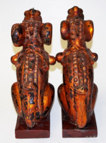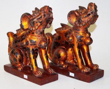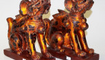 Lot Description:Pair Vietnamese carved wood temple dogs