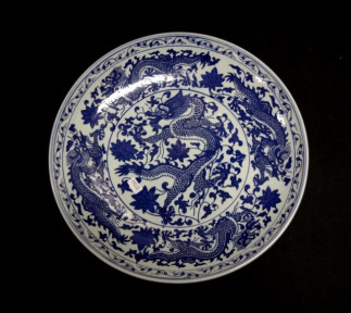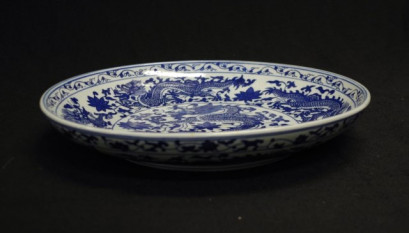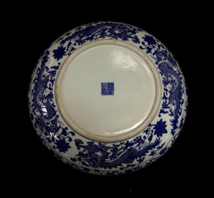 Lot Description:Chinese blue & white dragon shallow bowl