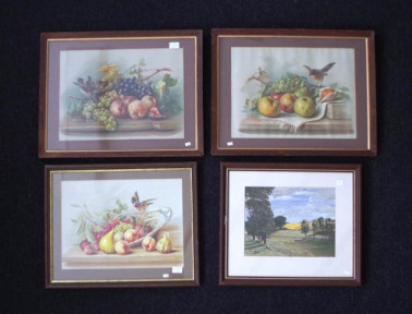 Notes:Together with three vintage chromolithographs of fruit platters with bird (4 works in total)