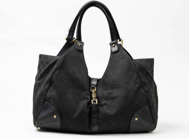 Lot Description:Gucci, a black GG canvas and leather nailhead Jackie shoulder bag