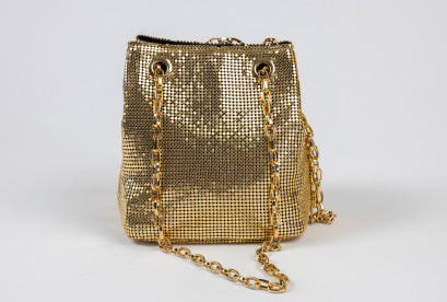 Lot Description:Rixo London, a gold Glo-mesh bag with adjustable strap