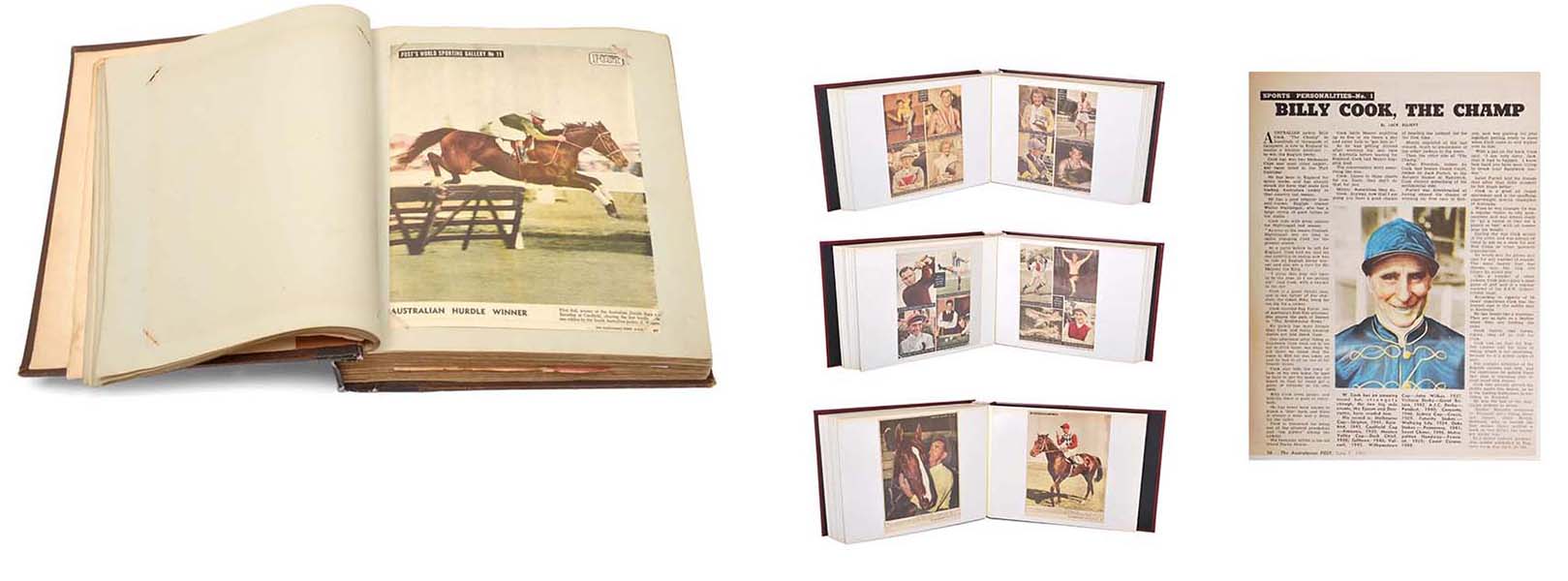 mid 1940s to early 1950s, from the 'World Sporting Gallery' series comprising 500+ colour images, including more than 50 champion horses: Phar Lap, Bernborough (2), Russia, Hiraji, Rimfire, Columnist, Gloaming, David, Shadow King and Comic Court, and other horse racing ephemera, in two albums and loose (a lot) -