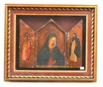Lot Description:A Framed Hand Painted Christain Travelling Icon, 19th Century