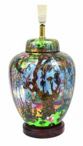 Lot Description:A Large Wedgwood Fairy Land Lustre Ginger Jar, Converted To Lamp Base,'Ghostly Wood', Circa 1920