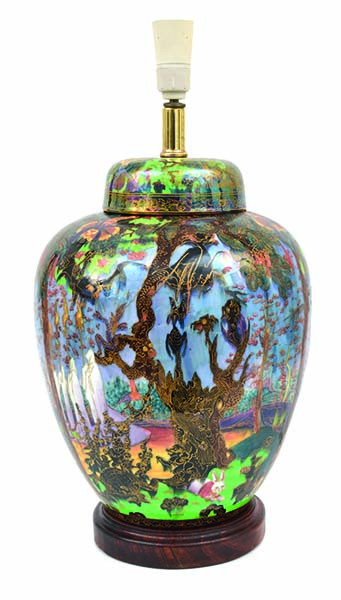 Lot #170 - A Large Wedgwood Fairy Land Lustre Ginger Jar, Converted To Lamp Base,'Ghostly Wood', Circa 1920