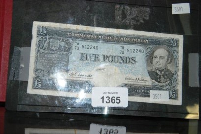 Lot #1365 - Commonwealth of Australia 5 pound bank note