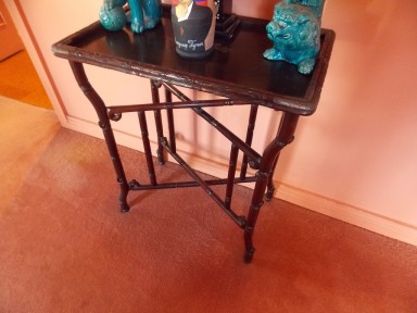 Lot Description:A Chinese silver mounted faux bamboo rosewood occasional table, 19th century