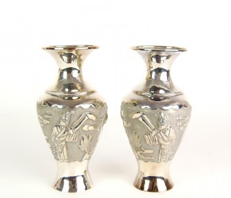 Lot Description:A pair of Chinese silver baluster vases, circa 1920
