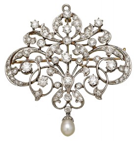 Lot Description:Pearl And Diamond Brooch, Circa 1900