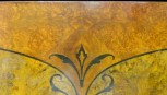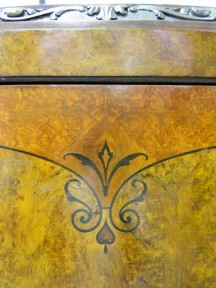 with ebony inlay the doors enclosing hanging space, and pull out open drawers -
