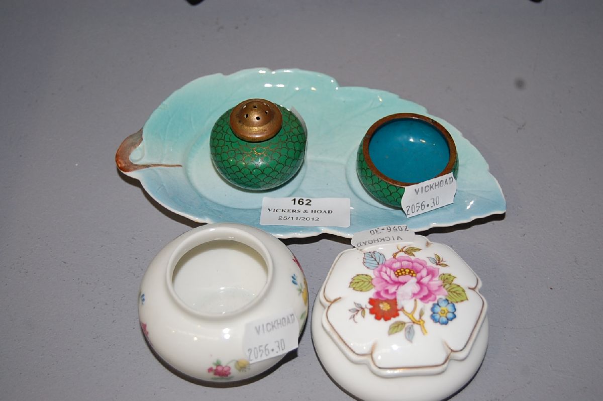 Lot #162 - Assortment to include Cloisonne salt and pepper, Small Thomas vase