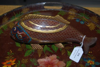 Lot #235 - Antique cloisonne carp, with removable cover, L 24 cm