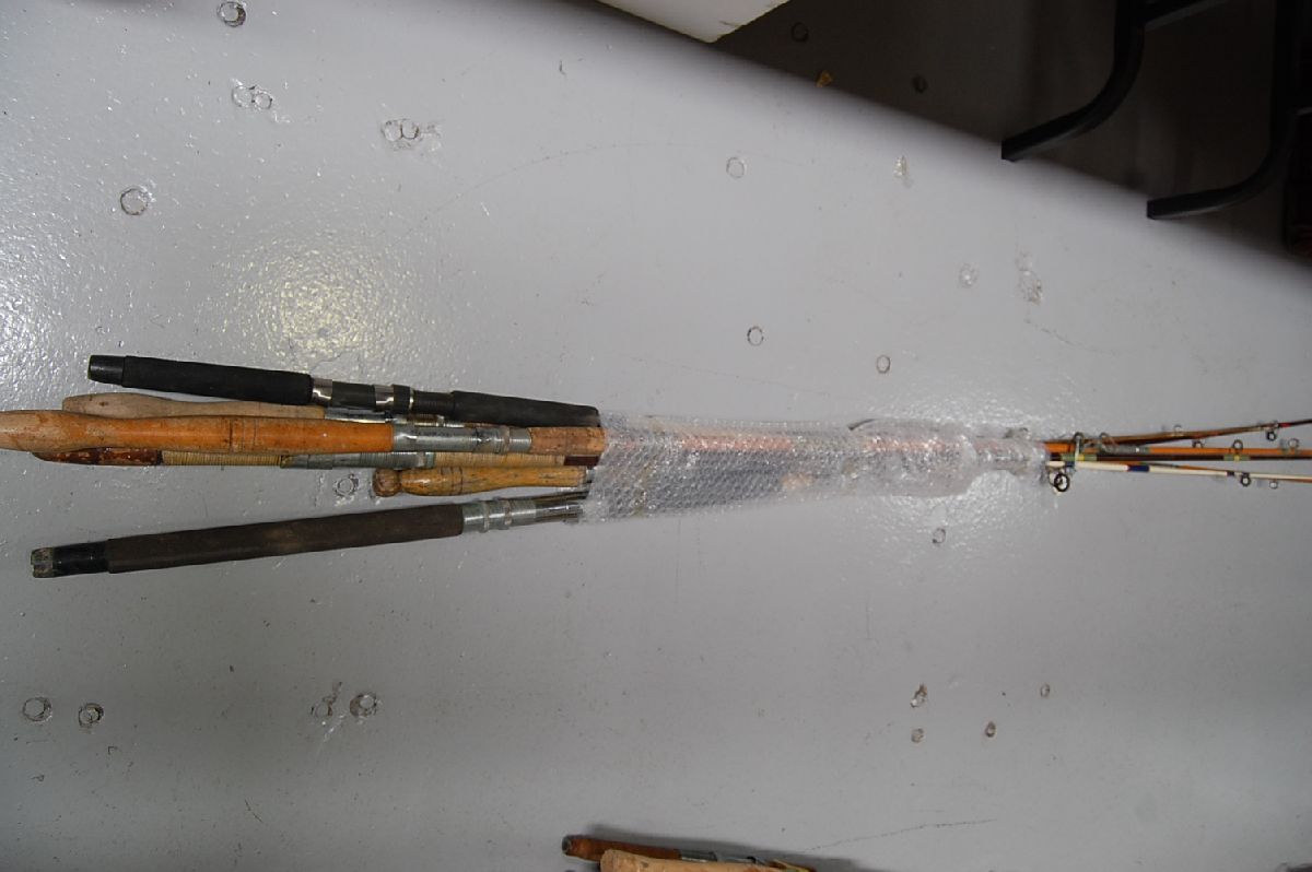 Lot #363 - Six fibre glass and bamboo fishing rods