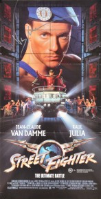 all Australian daybills or smaller including 'Conan The Destroyer' signed by Arnold Schwarzenegger and a copy of a photograph at time of singing and Grace Jones; 'The Last Boy Scout' signed by Bruce Willis and a copy of a photograph at the time of signing; two 'Street Fighter' posters, one signed by Jean-Claude Van Damme and Kylie Minogue, one signed by Minogue; 'Double Team' signed by Denis Rodman; and 'The Big Brawl', signed by Jackie Chan (7) -