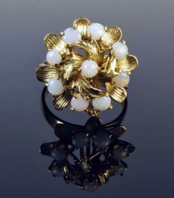 Lot #267 - 14ct Yellow Gold Opal and Sapphire Cocktail Ring