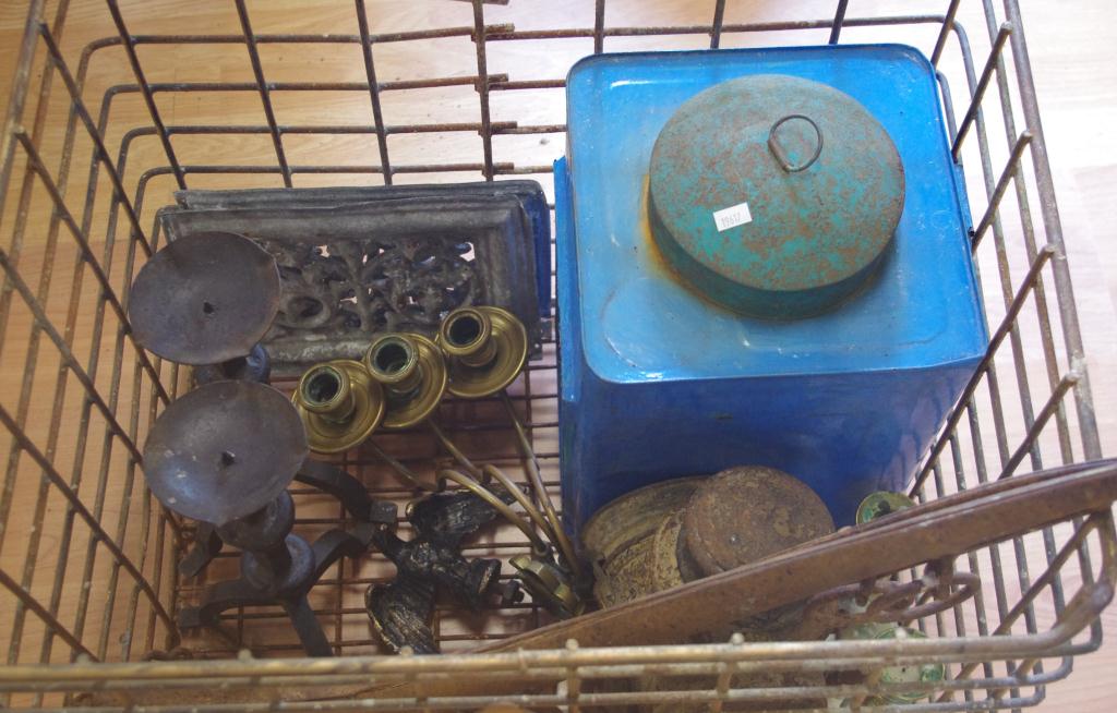 Lot Description:Crate of vintage metal wares