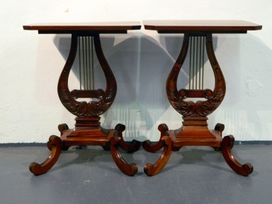 Lot Description:A Good Pair of Regency Lyre Form Mahogany Side Tables
