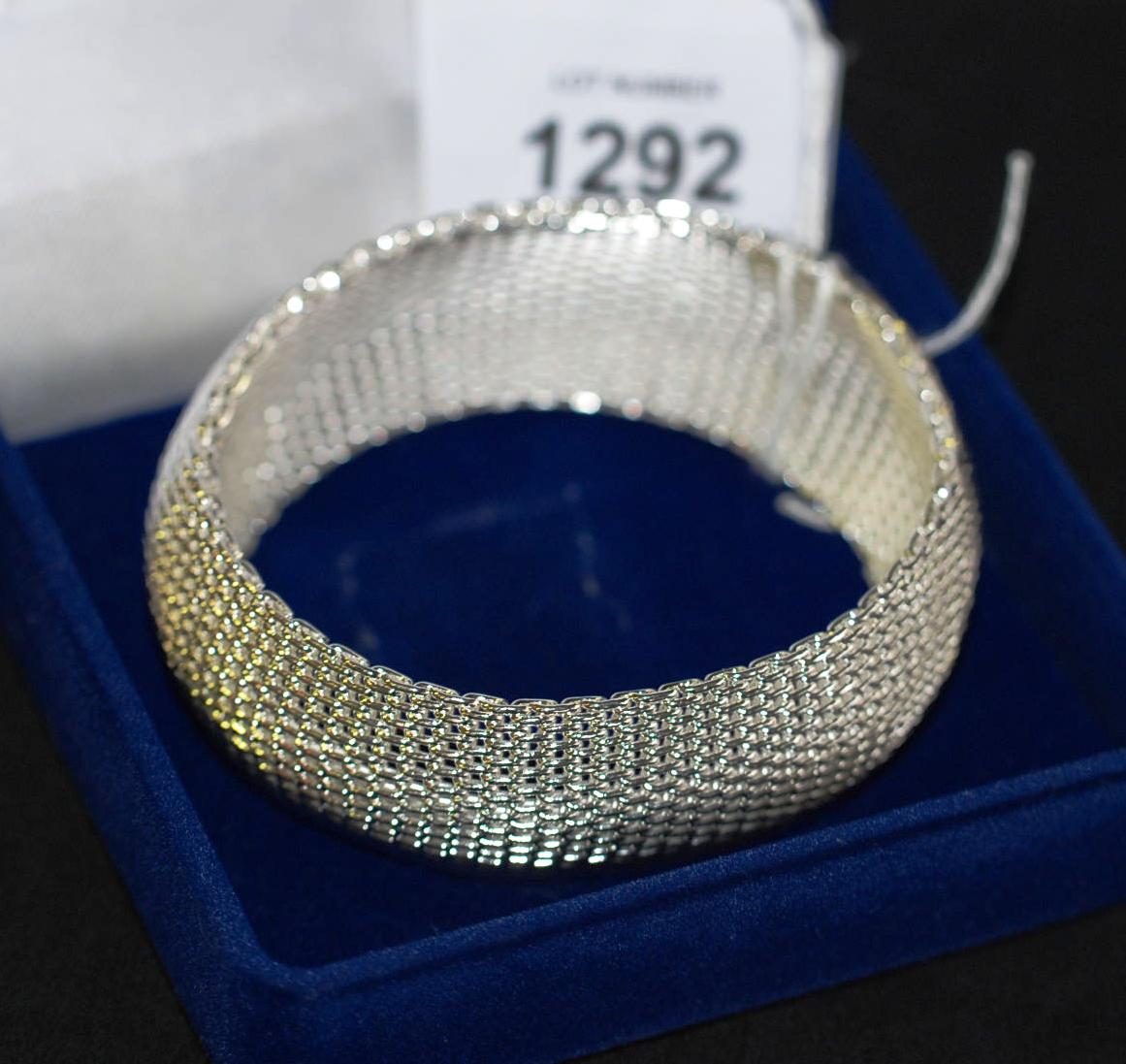 Lot #1292 - A sterling silver mesh bangle