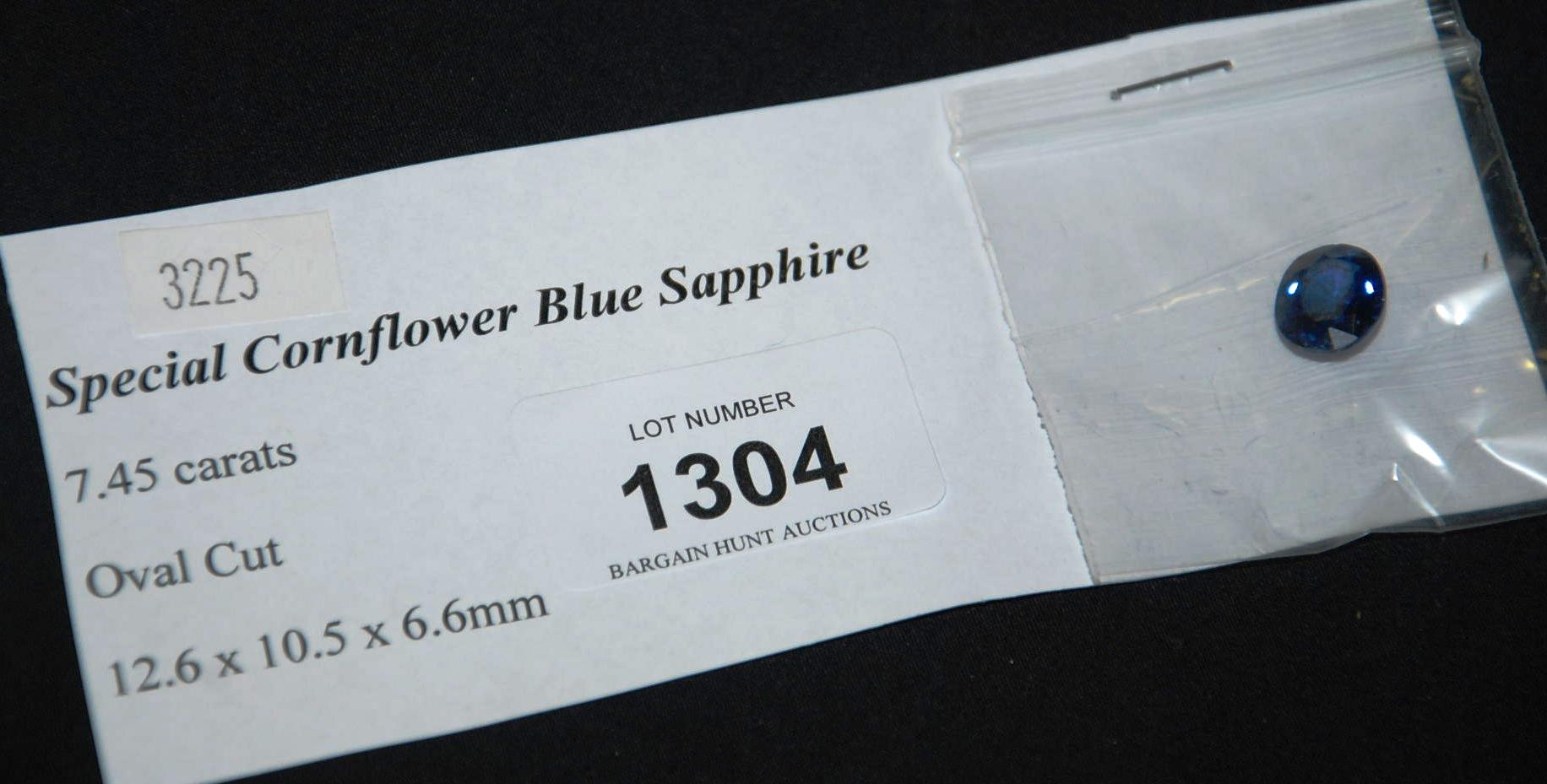 Lot #1304 - A cornflower, blue sapphire, oval cut, 7.45ct.